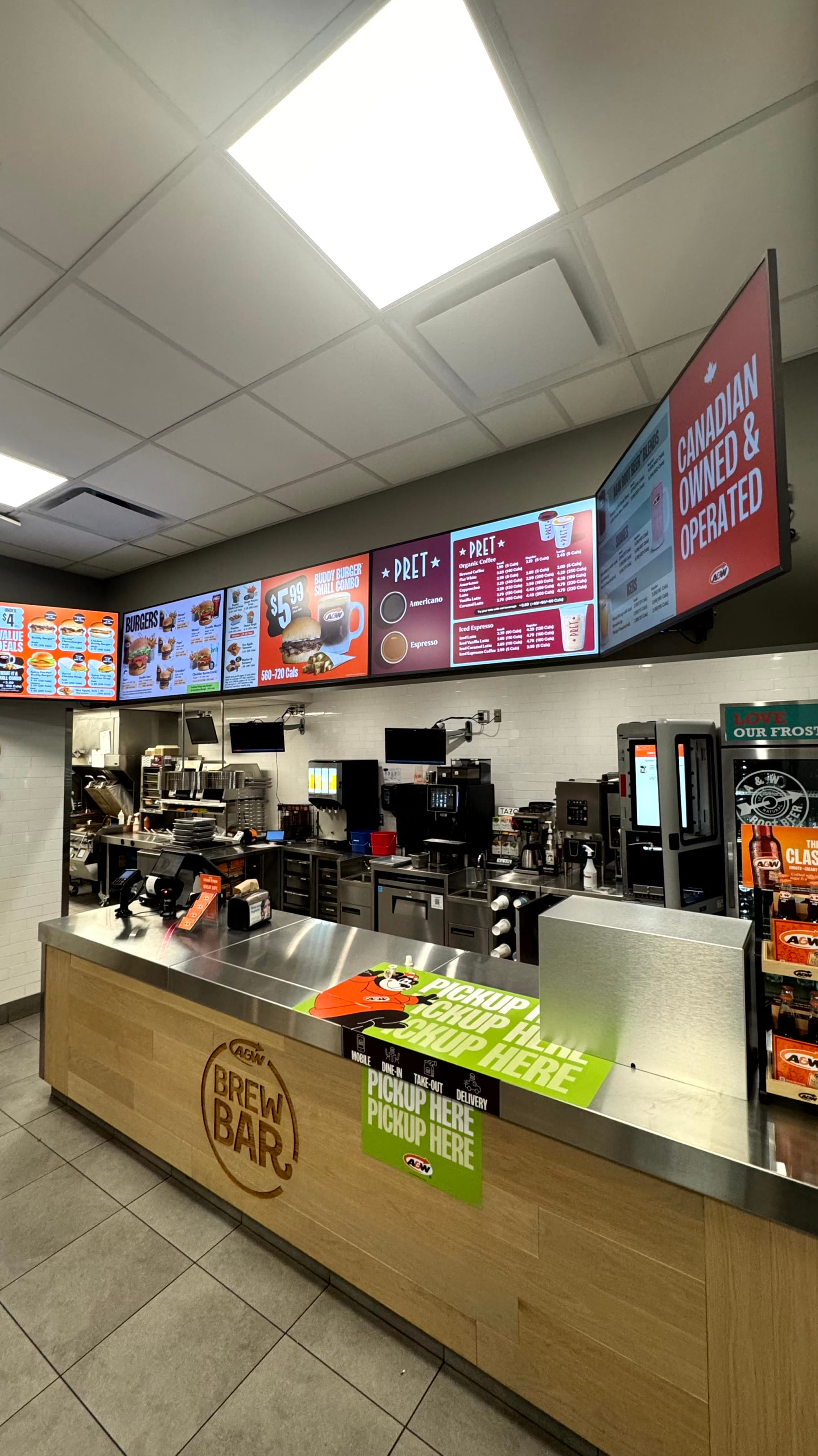 Our team worked to ensure the layout supports smooth operations for staff while maintaining a welcoming and practical environment for customers. The finished space reflects A&W’s recognizable brand standards while serving the needs of the surrounding community.